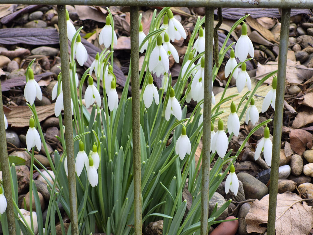Die ersten austreibenden Galanthus nivalis sind für mich immer ein großes Versprechen: „Der Frühling kommt in jedem Fall, man muss nur noch etwas Geduld haben“. Dann friert es wieder, alle Frühlingsblumen erschlaffen, kaum wird es wärmer, wachsen sie ein paar Zentimeter. Das kann einige Male so gehen, die kleinen Pflänzchen halten allerhand aus.